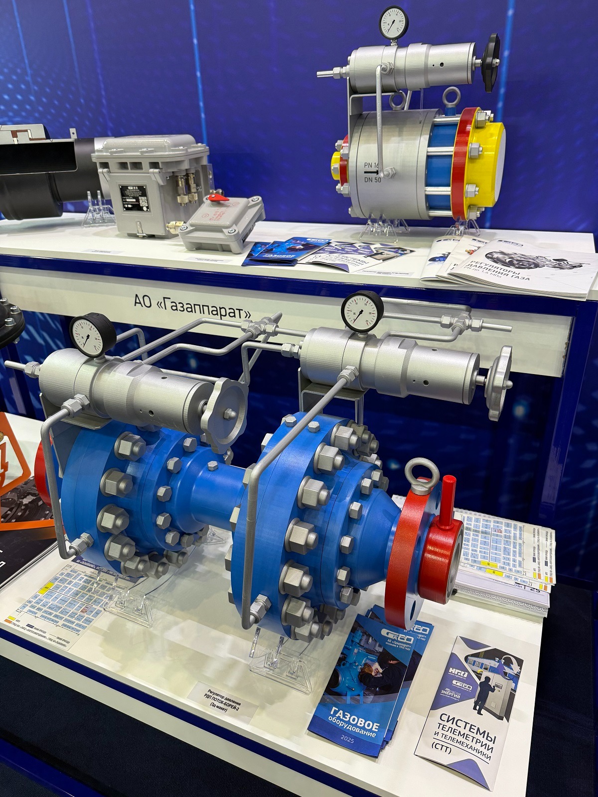 В этом году наше предприятие представило на своем стенде разнообразную продукцию: это системы телеметрии и телемеханики, краны шаровые с приводом, а также подогреватели газа, двустенные емкости хранения одоранта (в виде 3д-макетов).